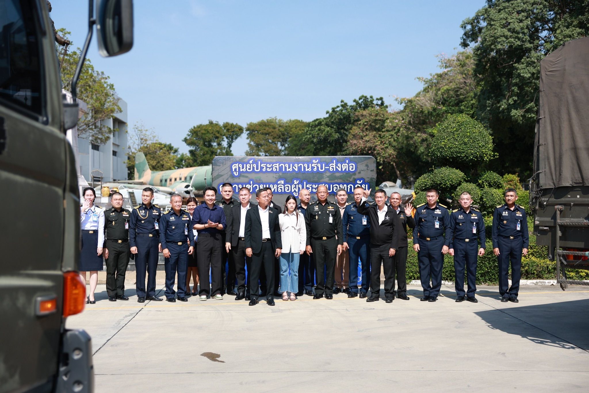 เวลา ๑๔.๐๐ น. พลโท อดุลย์ บุญธรรมเจริญ รมช.กห. / ผอ.ศป.สอ. เป็นประธานปล่อยขบวนคาราวาน “ธารน้ำใจคนไทย” โดยกรมการขนส่งทหารบกสนับสนุนยานพาหนะและพลขับ ได้แก่
