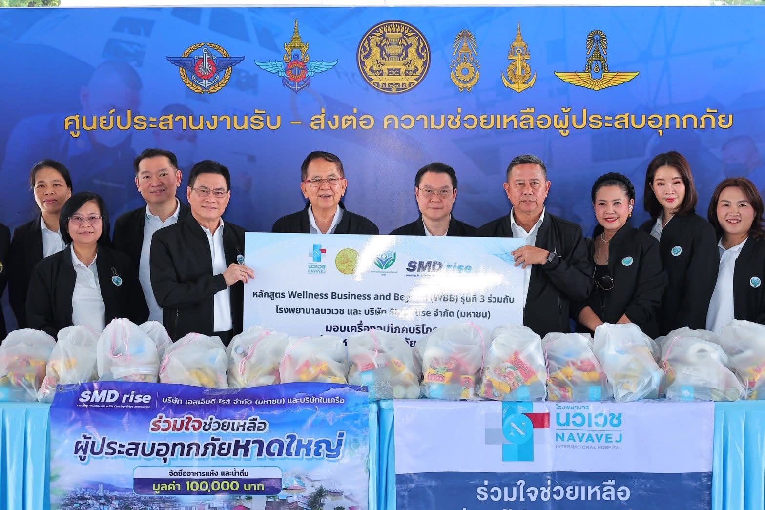 ร่วมกับ โรงพยาบาลนวเวช และ บริษัท SMD Rise จำกัด (มหาชน) มอบเครื่องอุปโภคบริโภคเพื่อช่วยเหลือผู้ประสบภัยภาคใต้จำนวนมาก