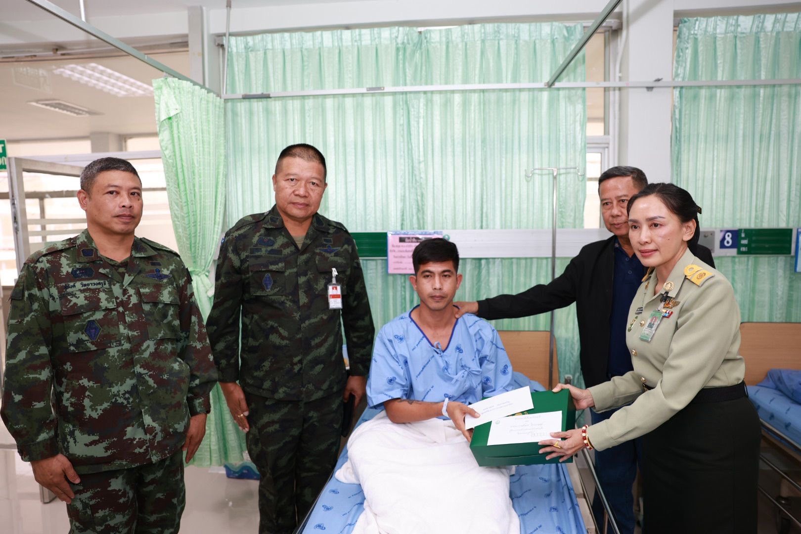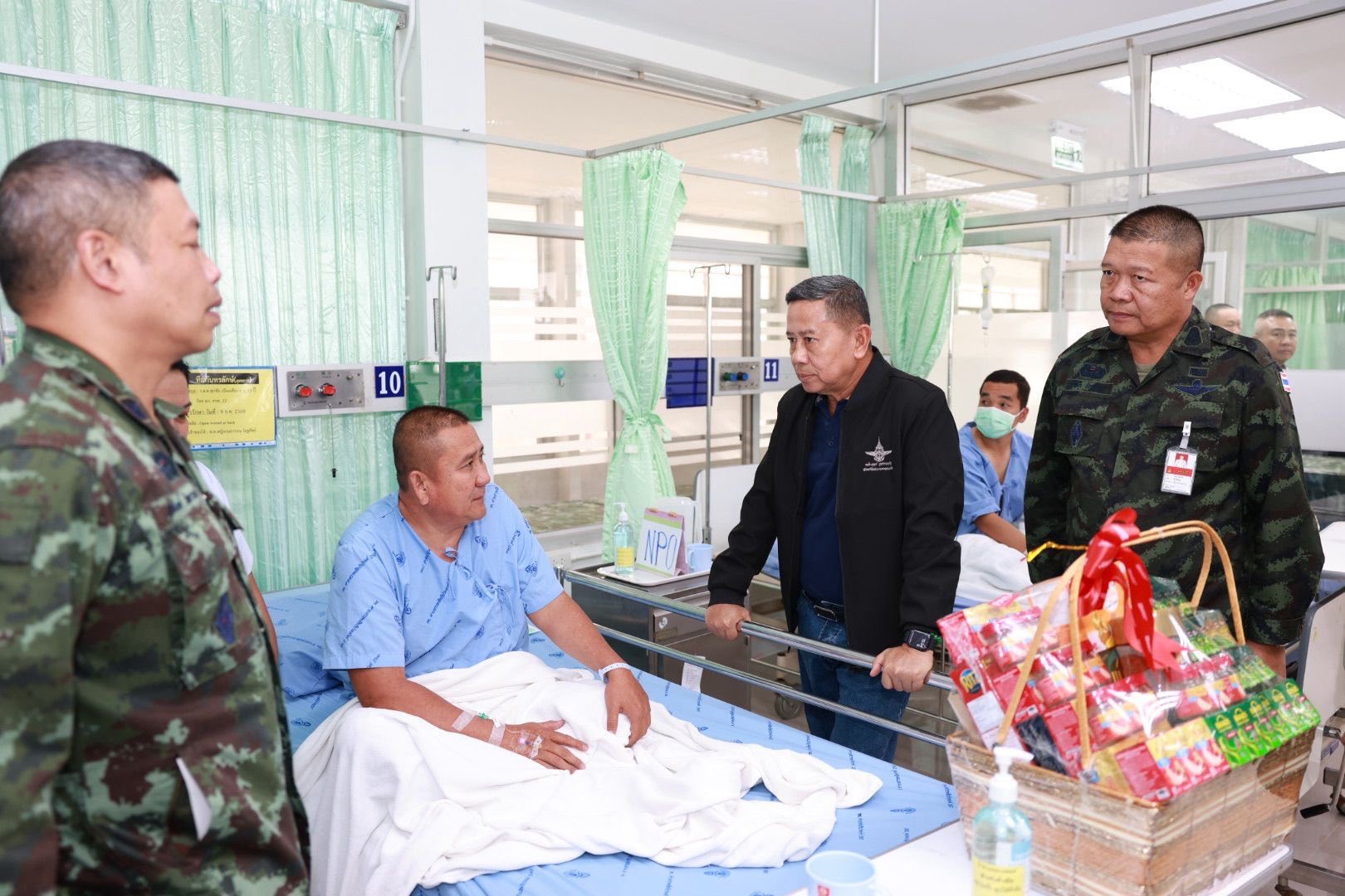 รมช.กห. กล่าวให้กำลังใจต่อหน้าผู้บาดเจ็บ โดยย้ำว่า รัฐบาลและกระทรวงกลาโหมให้ความสำคัญสูงสุดกับความปลอดภัยของกำลังพล พร้อมแสดงความเสียใจต่อการสูญเสียที่เกิดขึ้นจากการปฏิบัติหน้าที่เพื่อชาติ ขณะเดียวกัน การปฏิบัติการของฝ่ายไทยเป็นไปตามหลักสากล มุ่งเป้าเฉพาะเป้าหมายทางทหาร เพื่อป้องกันผลกระทบต่อประชาชนในพื้นที่