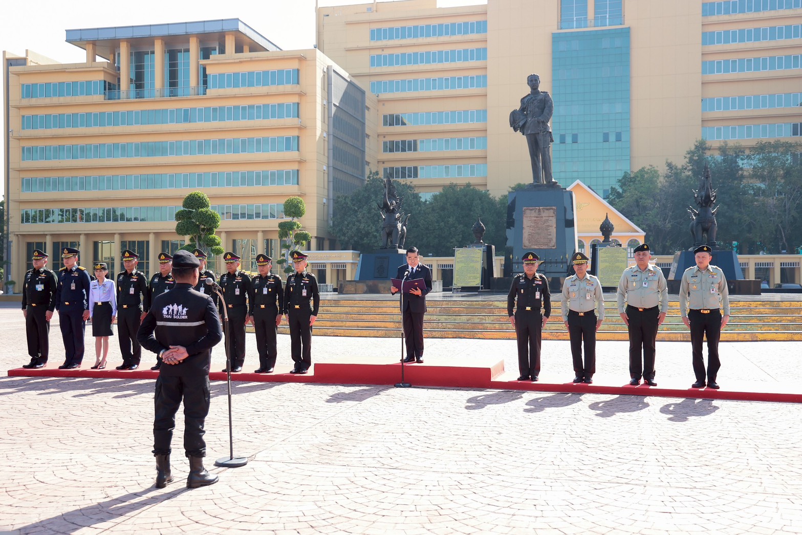 ภายหลังการกล่าวโอวาท รัฐมนตรีว่าการกระทรวงกลาโหมได้ถวายความเคารพพระบรมรูปพระบาทสมเด็จพระจุลจอมเกล้าเจ้าอยู่หัว จากนั้นทหารผ่านศึกร่วมกันร้องเพลงชาติและเพลงสรรเสริญพระบารมี โดยพร้อมเพรียงกัน