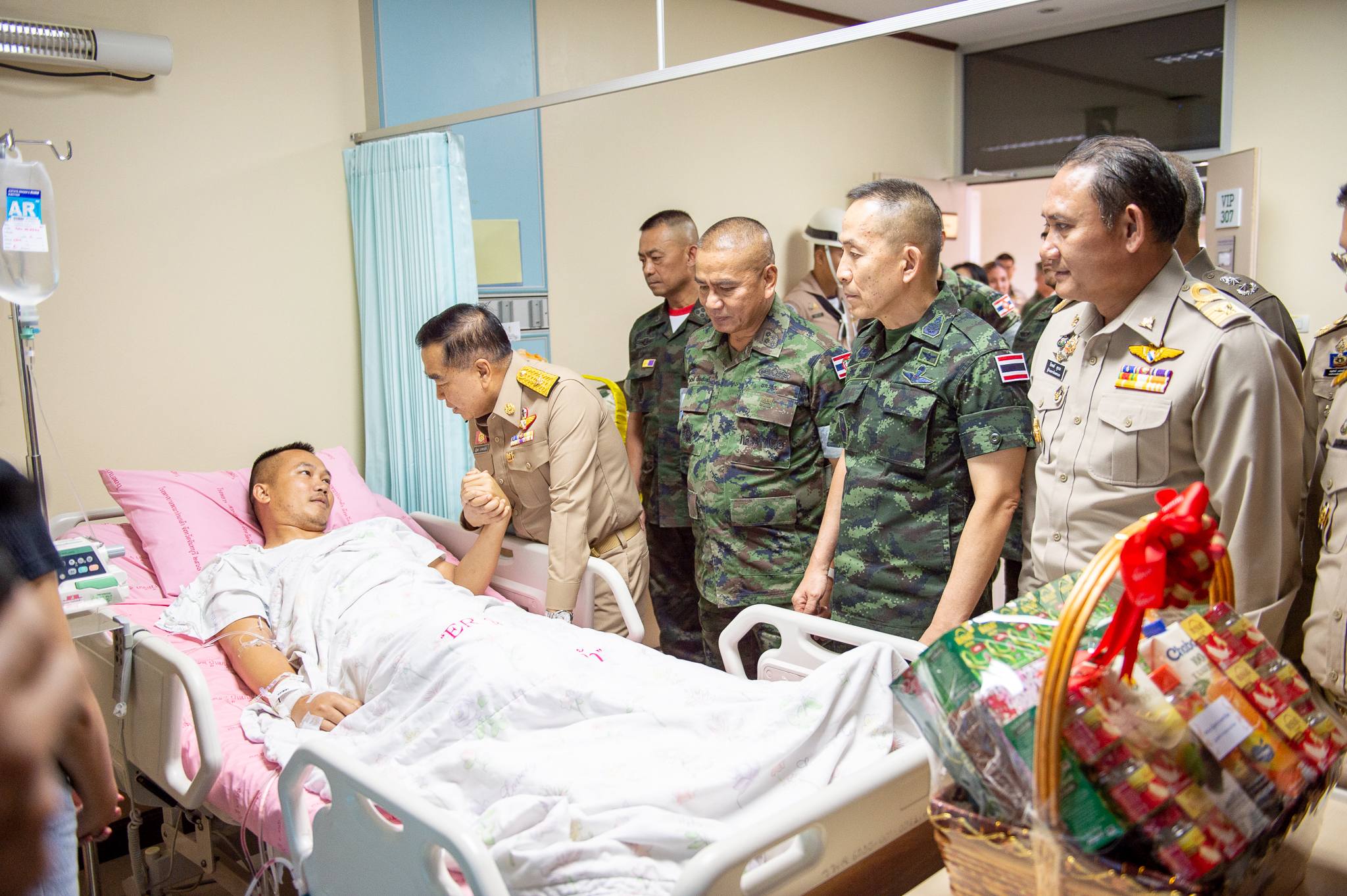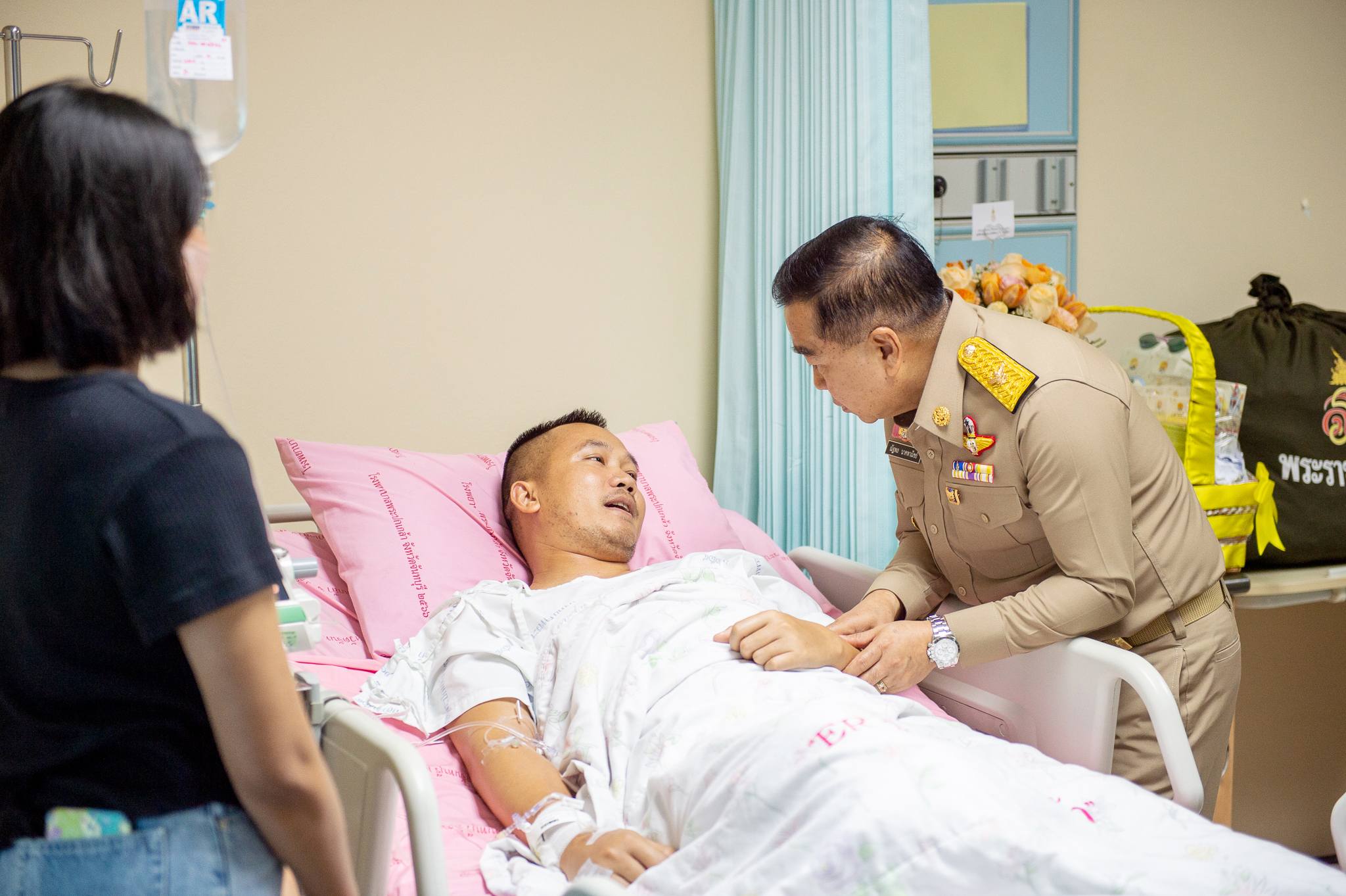 พลเอก ณัฐพล นาคพาณิชย์ รัฐมนตรีว่าการกระทรวงกลาโหมเดินทางไปเยี่ยมให้กำลังใจ จ่าเอก เทอดพงษ์ ผมนะรา ที่ได้รับบาดเจ็บจากการเหยียบทุ่นระเบิดบริเวณชายแดน จังหวัดตราด เมื่อวันที่ ๒๒ ธันวาคม ๒๕๖๘  ณ โรงพยาบาลพระปกเกล้าจันทบุรี จังหวัดจันทบุรี