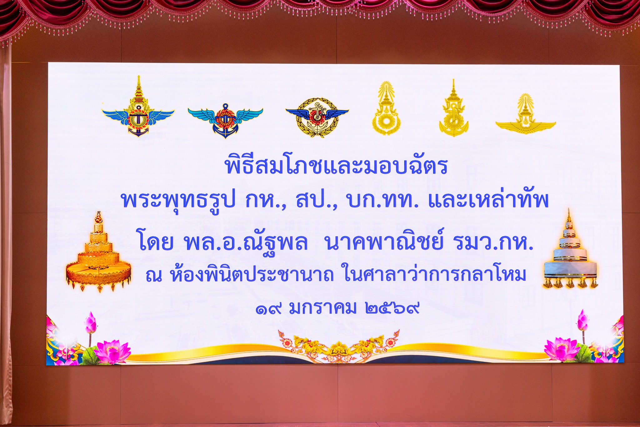 พลเอก ณัฐพล นาคพาณิชย์ รัฐมนตรีว่าการกระทรวงกลาโหม เป็นประธานในพิธีสมโภชและมอบฉัตรพระพุทธรูป กห., สป., บก.ทท. และเหล่าทัพ เมื่อวันที่ ๑๙ มกราคม ๒๕๖๙ ณ ห้องพินิตประชานาถ ในศาลาว่าการกลาโหม
