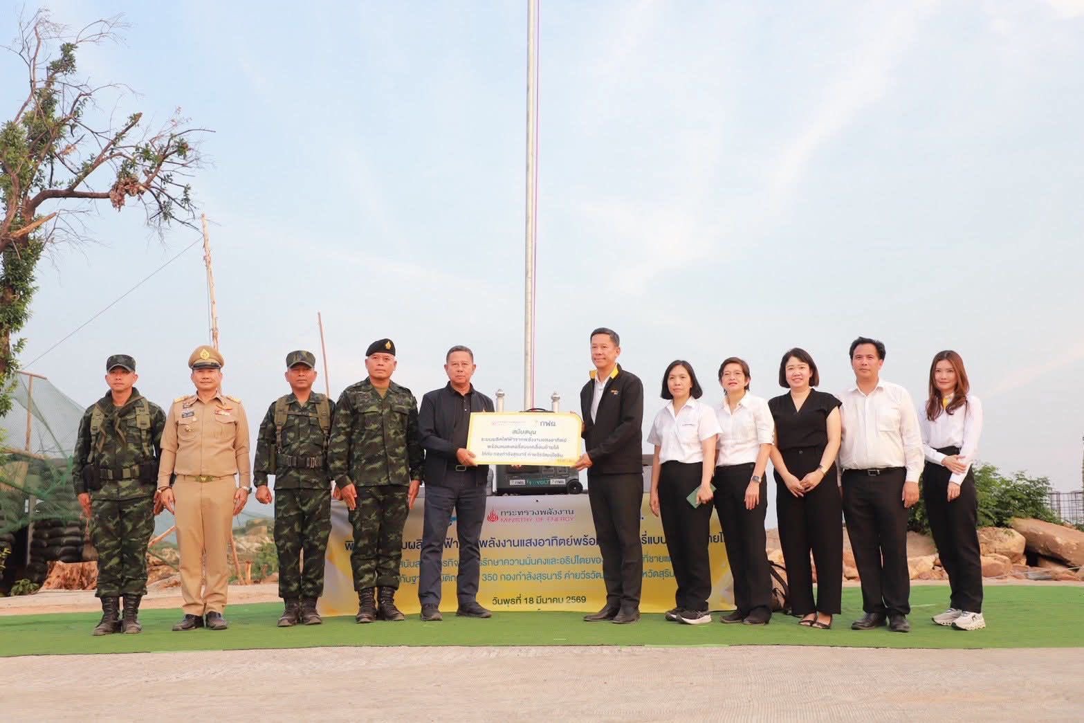 จากนั้นเวลา ๑๗.๐๐ น. “พล.ท.อดุลย์”ได้เดินทางไปต่อยัง “ ปราสาทตาควาย - เนิน ๓๕๐ ” ทำพิธีมอบระบบไฟฟ้าโซลาร์เซลล์ให้แก่หน่วยทหารในพื้นที่ชายแดน เพื่อเสริมสร้างขีดความสามารถในการปฏิบัติภารกิจ และยกระดับคุณภาพชีวิตของกำลังพลในพื้นที่ห่างไกล ภายใต้โครงการพัฒนาพื้นที่ความมั่นคงชายแดน : น้ำไหล ไฟสว่าง ทางดี มีสัญญาณโทรศัพท์ ทั้งนี้ภายหลังเสร็จสิ้นภารกิจได้ร่วมรับประทานอาหารเย็นกับกำลังพลในพื้นที่ เพื่อสร้างขวัญกำลังใจ และแสดงถึงความห่วงใยของผู้บังคับบัญชาต่อผู้ปฏิบัติงานในพื้นที่ชายแดน