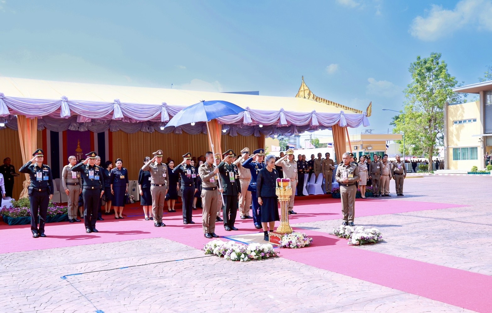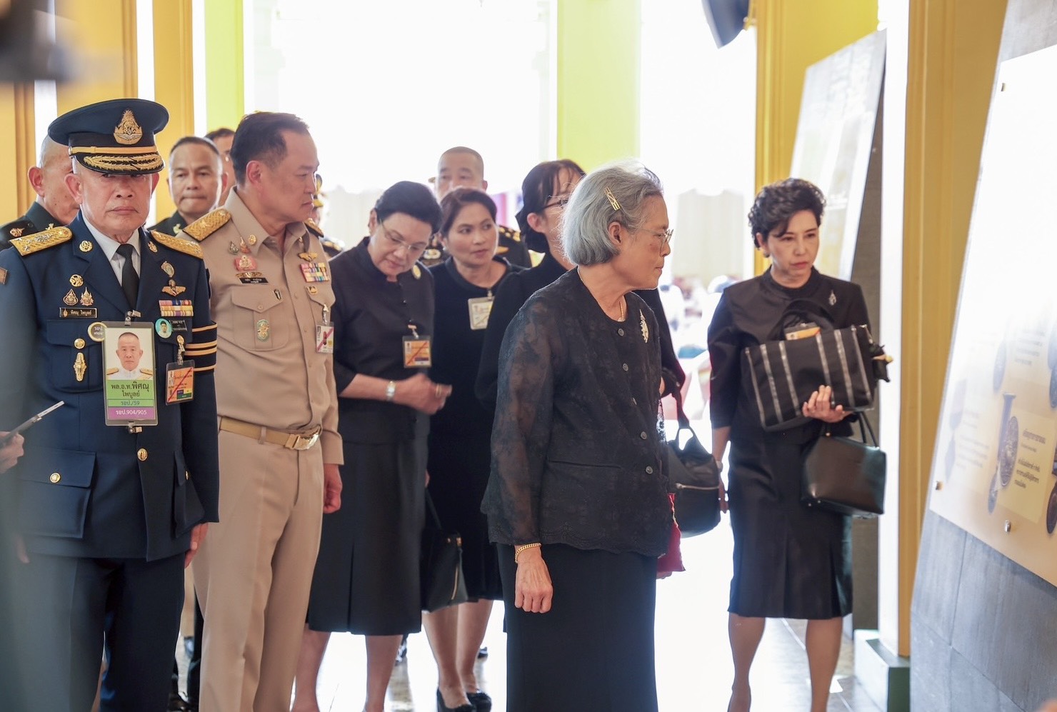 ในการนี้ พลเอก ธราพงษ์ มะละคำ ปลัดกระทรวงกลาโหม กราบบังคมทูลรายงาน และเฝ้าทูลละอองพระบาทรับเสด็จ พร้อมด้วย นายกรัฐมนตรี รัฐมนตรีว่าการกระทรวงกลาโหม รัฐมนตรีช่วยว่าการกระทรวงกลาโหม ผู้บัญชาการทหารสูงสุด และผู้บัญชาการเหล่าทัพ ผู้บัญชาการตำรวจแห่งชาติ ผู้ว่าราชการจังหวัดนนทบุรี ผู้พิพากษาหัวหน้าศาลจังหวัดนนทบุรี ผู้อำนวยการถวายความปลอดภัยประจำพื้นที่ ผู้บังคับการตำรวจภูธร จังหวัดนนทบุรี อดีตปลัดกระทรวงกลาโหม รองปลัดกระทรวงกลาโหม หัวหน้าหน่วยขึ้นตรงสำนักงานปลัดกระทรวงกลาโหม และคู่สมรส เฝ้าทูลละอองพระบาทรับเสด็จโดยพร้อมเพรียงกัน