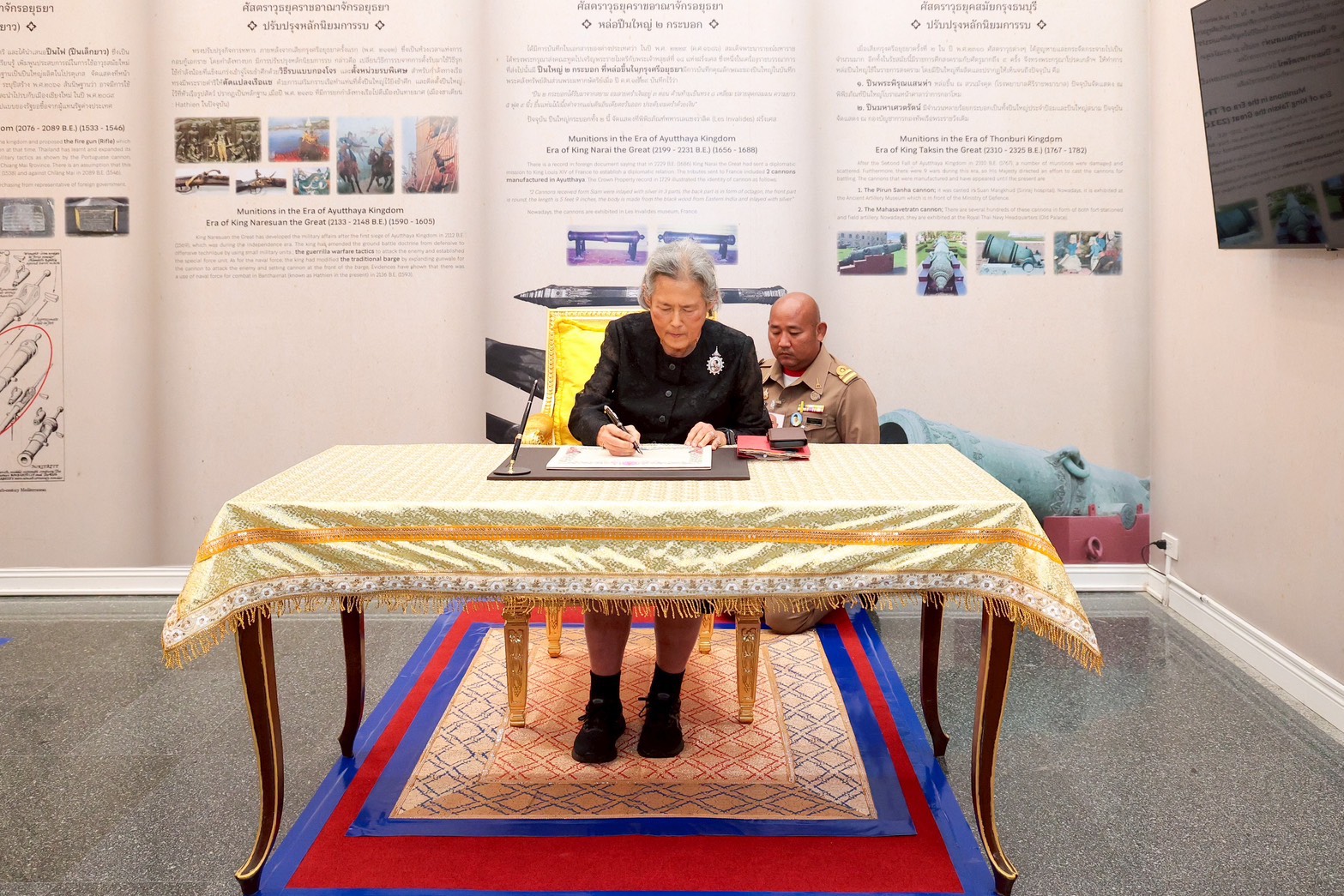 ภายหลังทรงประกอบพิธีเปิดอนุสรณ์สถานแล้ว ทรงทอดพระเนตรการจัดแสดงภายในอนุสรณ์สถาน จากนั้นเสด็จพระราชดำเนินไปยังพระบรมรูปสมเด็จพระนเรศวรมหาราช ทรงวางพวงมาลัยถวายราชสักการะ ทรงลงพระนามาภิไธยในสมุดที่ระลึก และทรงประทับตราที่ระลึก ต่อจากนั้น ทรงฉายพระฉายาลักษณ์ร่วมกับคณะผู้บังคับบัญชา ณ โถงอาคารสำนักงานปลัดกระทรวงกลาโหม โดยปลัดกระทรวงกลาโหม และนายกสมาคมภริยาข้าราชการสำนักงานปลัดกระทรวงกลาโหม เฝ้าทูลละอองพระบาทถวายของที่ระลึก ก่อนเสด็จพระราชดำเนินกลับ