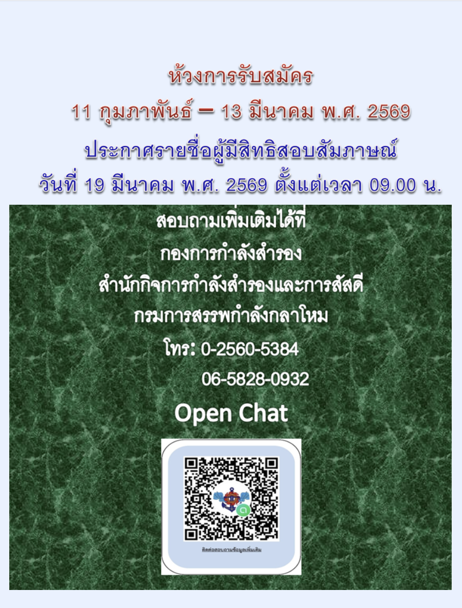 สำนักงานปลัดกระทรวงกลาโหม เปิดรับสมัครกำลังพลสำรองของสำนักงานปลัดกระทรวงกลาโหม จำนวน 12 อัตรา ประจำปี พ.ศ. 2569