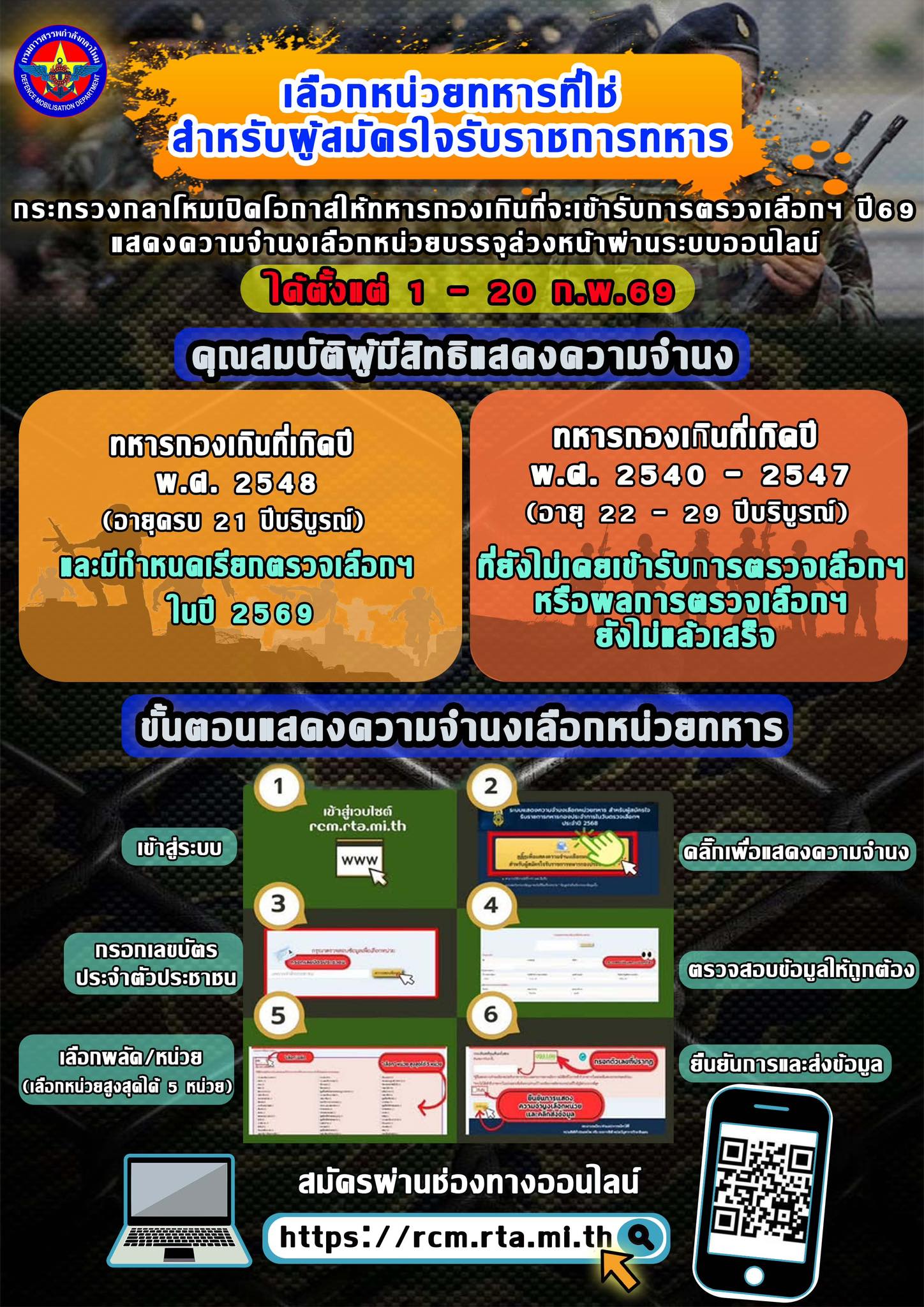 โอกาสสุดท้ายเพียง 3 วัน ทหารกองเกินต้องเข้ารับตรวจเลือกฯ ประจำปี 2569