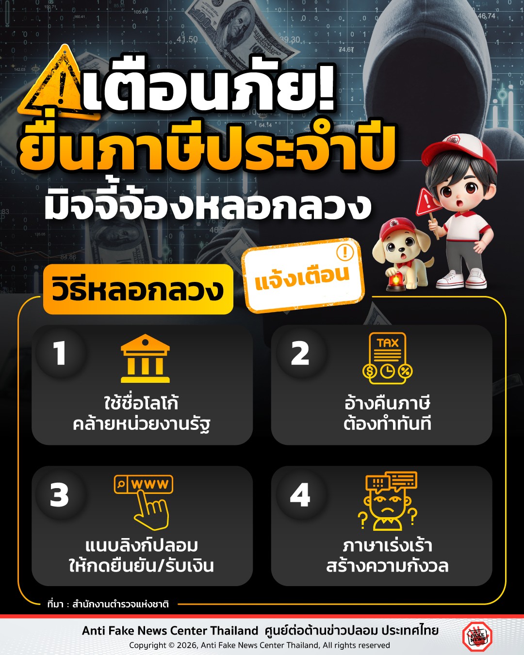 เตือนภัย! ยื่นภาษีประจำปี มิจจี้จ้องหลอกลวง