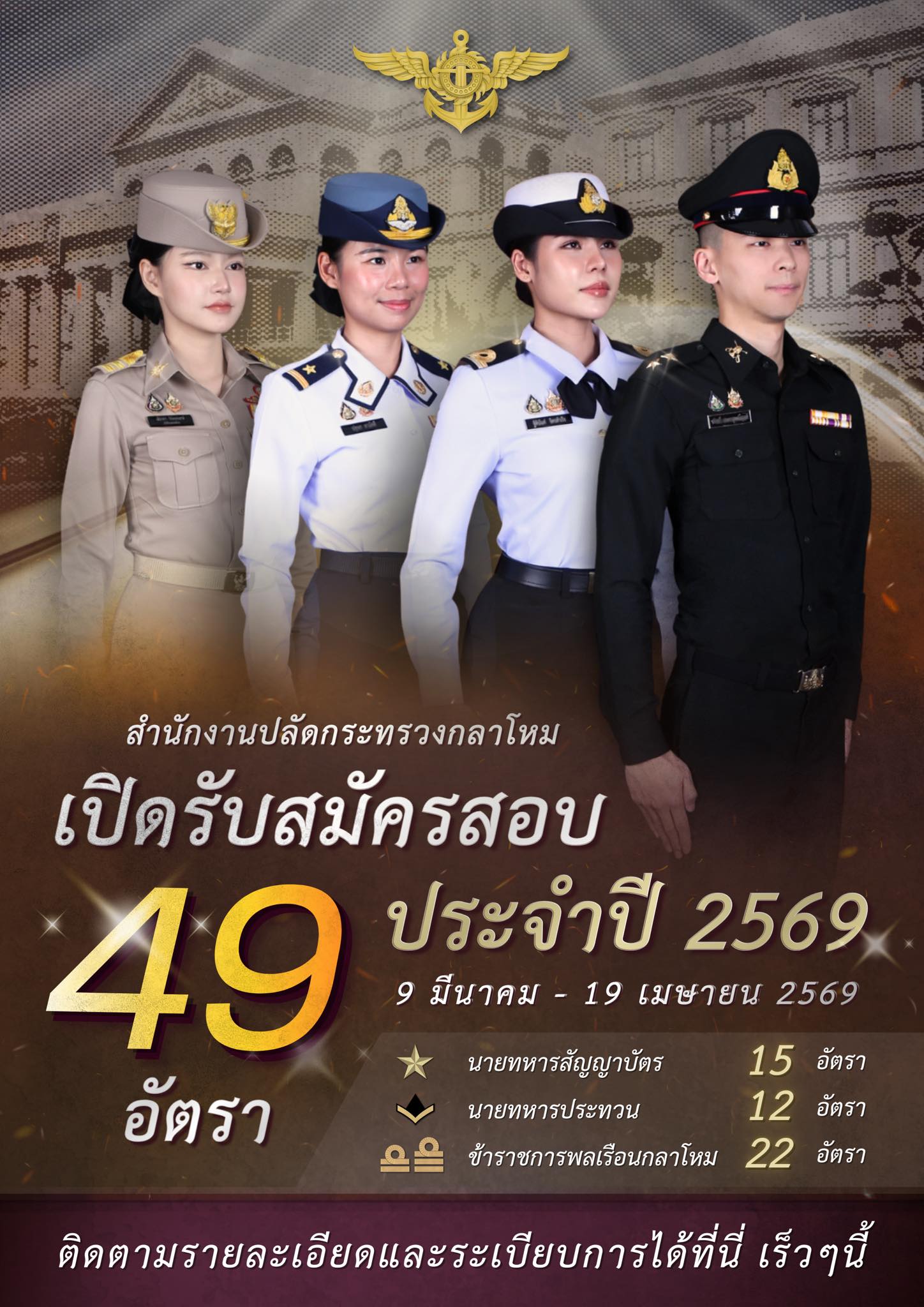 สำนักงานปลัดกระทรวงกลาโหม เปิดรับสมัครสอบ 49 อัตรา ประจำปี 2569